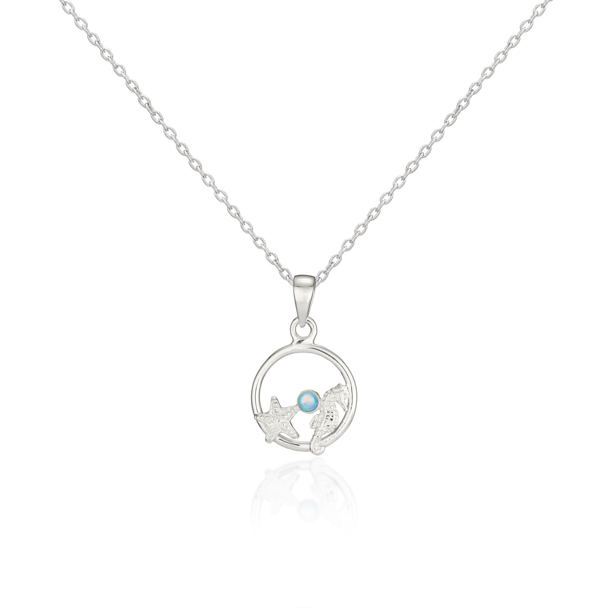 Joli Beau Sterling Silver Sea Hors & Starfish Circular Pendant Set With An Opalite Stone 🇬🇧