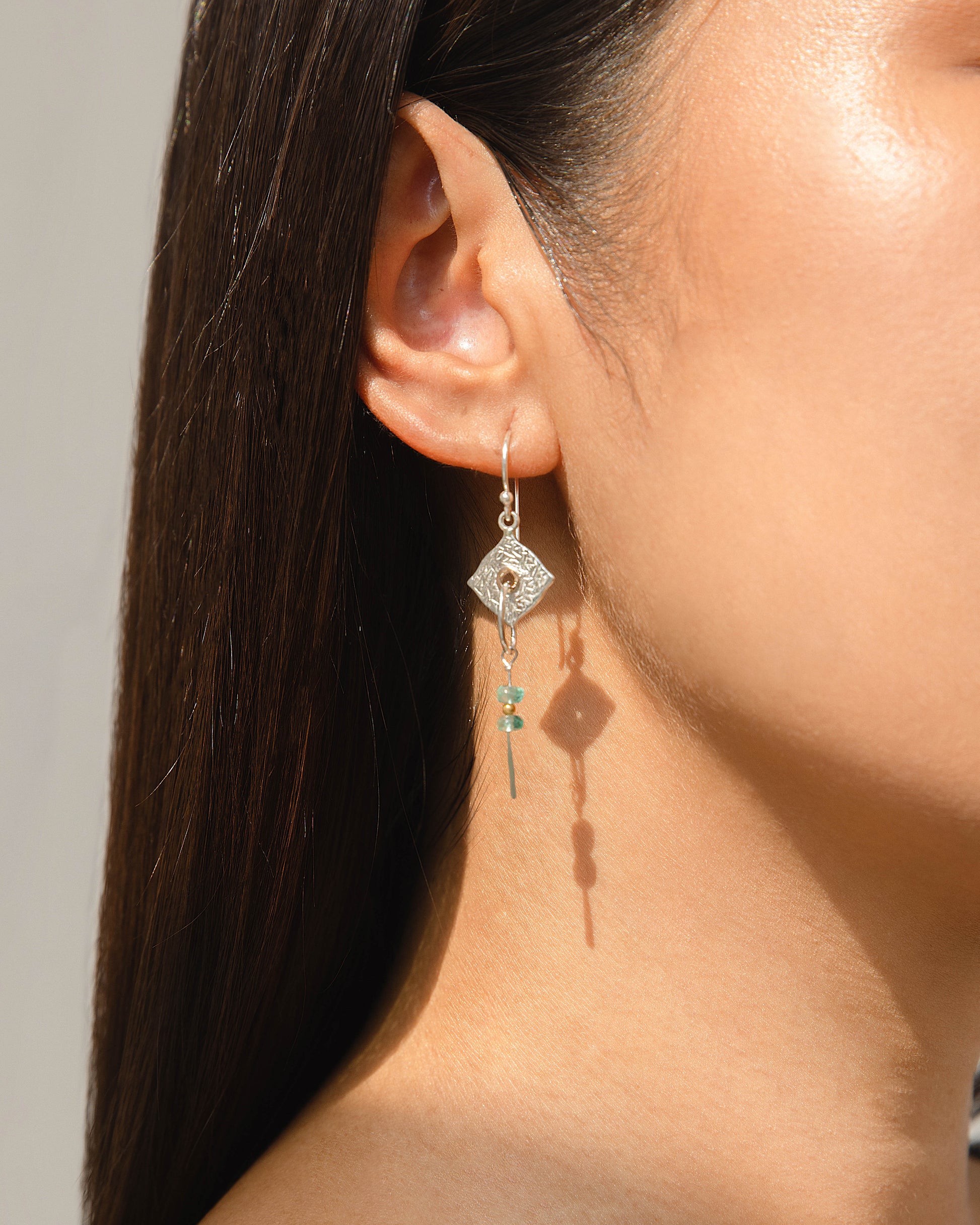 Joli Beau Sterling Silver Textured Apatite With 14ct Detail Drop Earrings